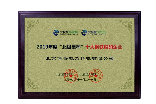 2019年11月21日,參加“2019年北極星十大煙氣治理企業(yè)評(píng)選”,公司獲得“十大鋼鐵脫硝企業(yè)獎(jiǎng)”。