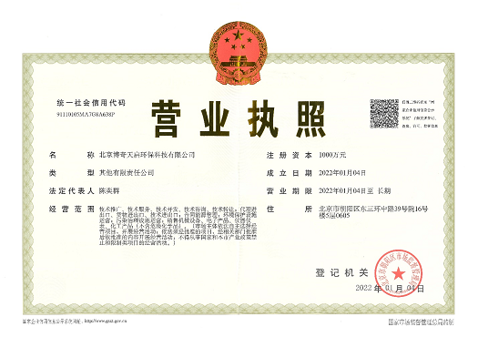 2022年1月4日,北京博奇天啟環(huán)保科技有限公司注冊(cè)成立