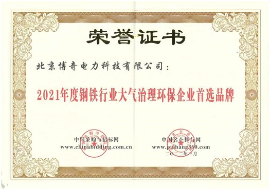 2022年3月,獲得2021年度鋼鐵行業(yè)大氣治理環(huán)保企業(yè)首選品牌