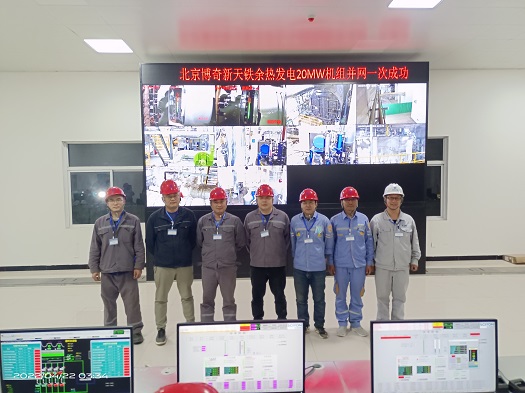 2022年6月4日,新天鐵余熱發(fā)電15MW機(jī)組沖轉(zhuǎn)一次成功,6月6日11:57 15MW機(jī)組并網(wǎng)一次成功